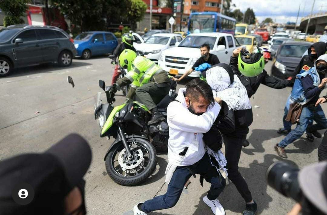 Bajo una fuerte lluvia, en medio de un recorrido que ya completa 17 kilómetros al lado de centenares de estudiantes que arengan con mucho ánimo, Jorge recuerda que el policía estaba solo y que los manifestantes estaban exaltados, lo cual lo hizo pensar que podrían actuar en contra del agente: "Intervenimos para evitar que se diera alguna situación en la que los manifestantes y el policía pudieran resultar lastimados. De este suceso hay una foto que circuló en redes sociales y que se sacó de contexto porque la hicieron parecer como si yo estuviera participando en algún intento de agresión".